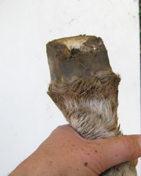 Und so sahen seine Hufe aus als er zu seiner Retterin Gabi kam. Viel zu lang. Möglicherweise hatte er auch schon einen Reheschub.